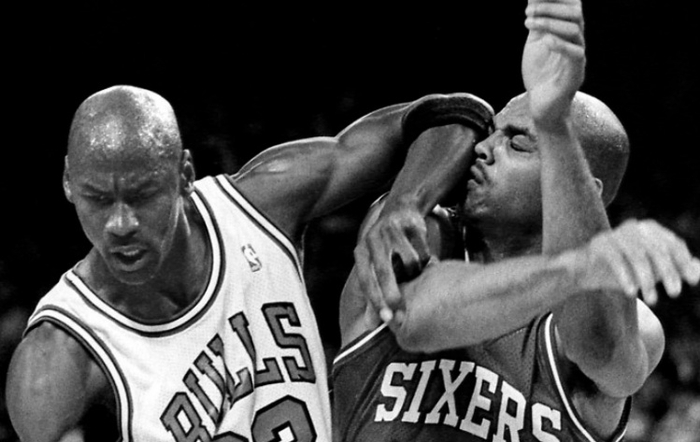 两年后总决赛,公牛对太阳,乔丹对巴克利,前四场2比2,第五场前乔丹跟巴克利还打了高尔夫,传说他还输给了巴克利一笔钱,巴克利喜滋滋;第五场乔丹上场就带杀气,全场55分,包括最后面对巴克利打三分后举手庆祝:对,就是要搞死巴克利。