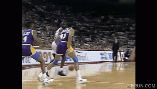 他的防守端细节,之前举过例子。比如1991年总决赛对付魔术师,一个教科书式防守: