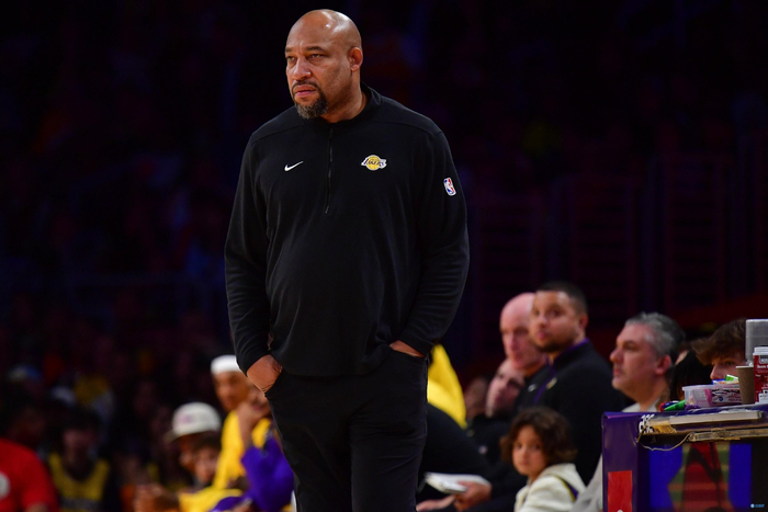 如果湖人这个赛季继续这样进行下去,这个问题就无关紧要了。但在他们能以某种方法接近完全健康的情况下,哈姆将要做出艰难的轮换决策。詹姆斯、戴维斯、里夫斯和拉塞尔显然是锁定首发的四个人。八村塁打得很好——他的数据能支持他打首发——即使范德比尔特回来,他也能保住首发的位置。丁威迪是替补后卫。