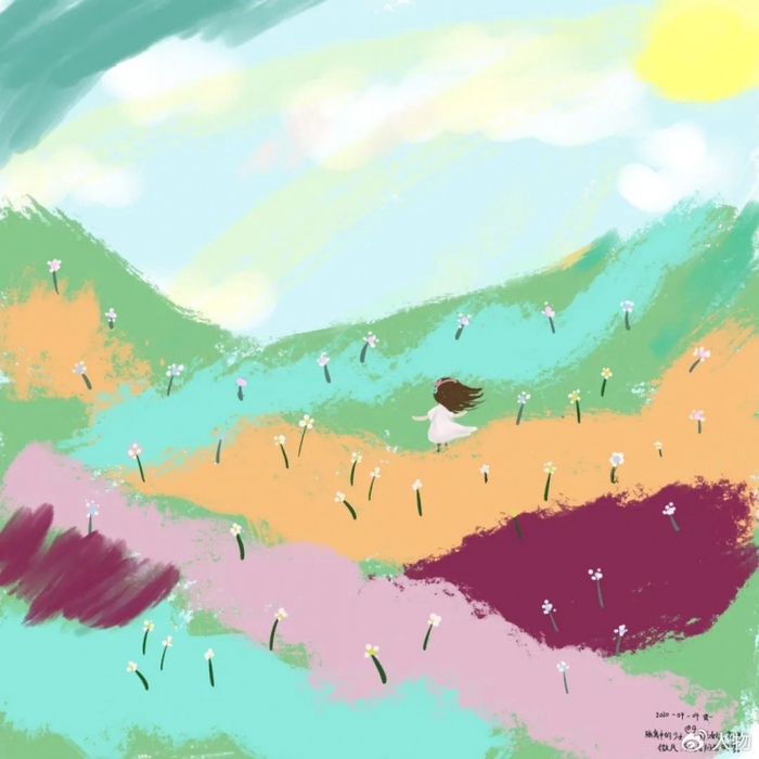 疫情时期,她在出国比赛时患了新冠,在塞尔维亚一家医院住了两周,天天输液,瘦了好多,回到上海还有病毒残留,又在上海的医院继续隔离,在医院的漫长日子里,她画了一幅画:一个小女孩在花海里,张开双臂,感受着外面的世界。还画了医院窗户对面的风景,街角和居民楼,落款写着 2022年3月23日。这幅画她画了一天,从早上画到太阳落山,才感觉到,哦,这一天都过去了。她想,如果不打球,自己可以当一个插画家,画一些自己喜欢的东西,「接一些商单挣钱,也不用老是出门,这样的生活太好了。」