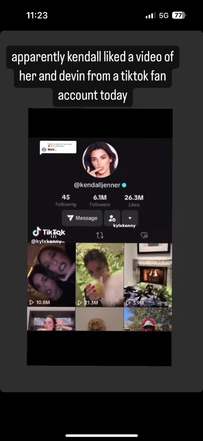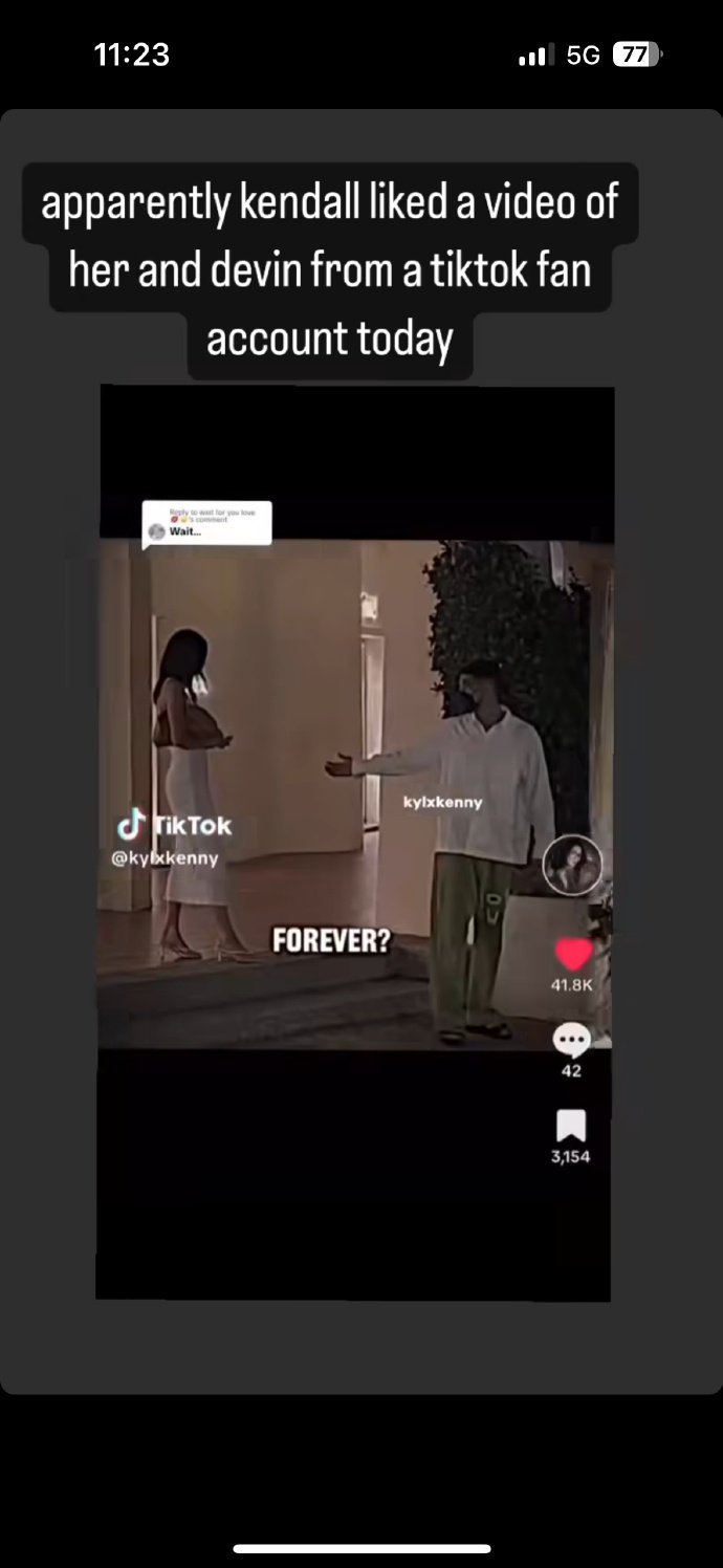 有网友发现,肯达尔-詹娜在TikTok(美国抖音)点赞了一个布克向她伸手的视频。
