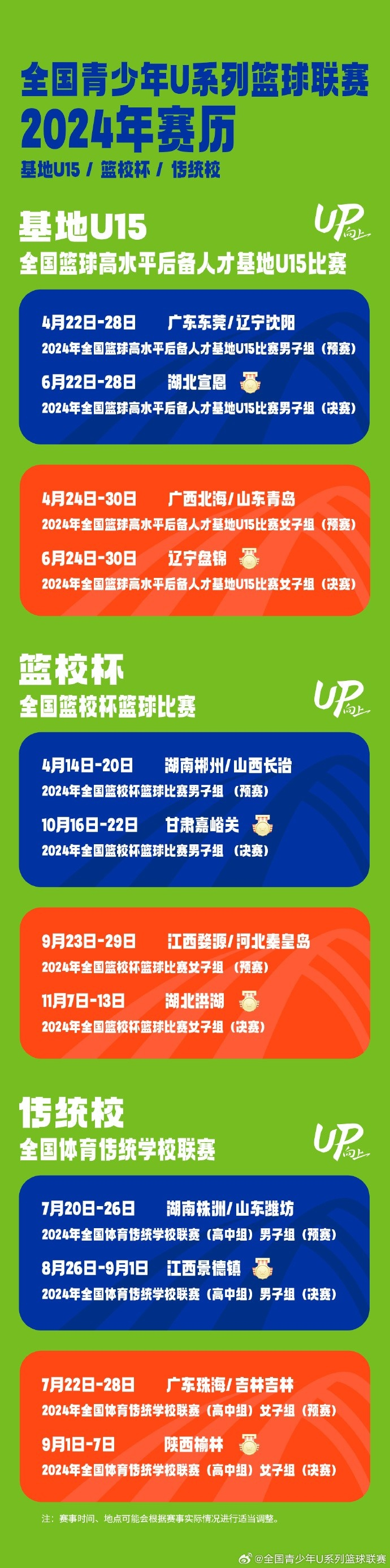 🗓️一键收藏!2024年全国青少年U系列篮球联赛全年赛历!