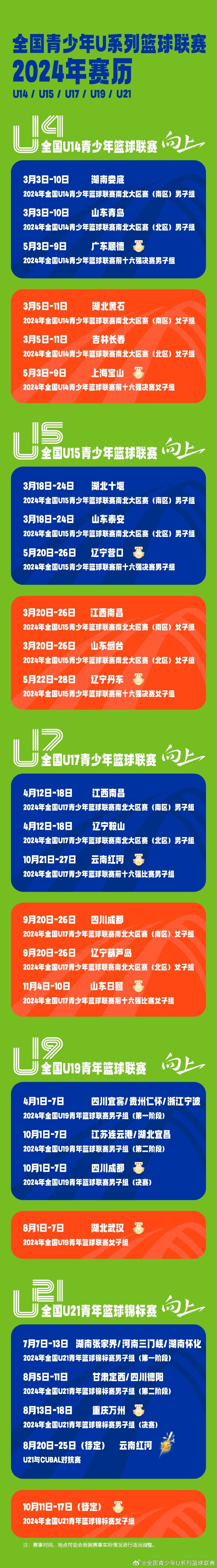 一键收藏!2024年全国青少年U系列篮球联赛全年赛历!
