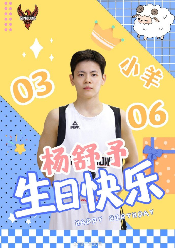 广东女篮官博写道:“小羊生日快乐,新的一年健康涨球。”