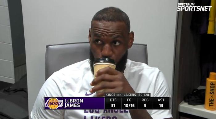 赛后,詹姆斯接受了记者采访。谈到球队在第三节末将分差追至12分。他说道:“我投进了三分,我们打出了(10-0)高潮。我们那段时间防守非常好,马利克(蒙克)在24秒快到时的时候投进一记三分。我们回到进攻端,我给贾克森(海斯)送出了一记口袋传球,我觉得他只是做了一个自然的动作,结果在(国王)挑战后改判进攻犯规,然后我们就落后了15分。我认为如果我们可以防成那个回合,也许在那时候把分差缩小到10分,也许我们本可以再多利用这股势头打一打,但是你懂的,这一两个回合着实影响了我们(追分)。”