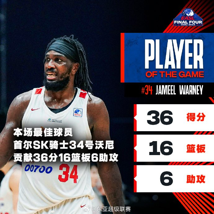东亚超级联赛终极四强赛半决赛:首尔SK骑士94-79安养赤红火箭