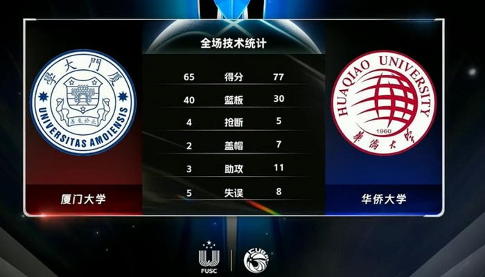 末节开局厦门大学这边罚球也没能打进,反倒是华侨大学继续稳定输出由叶润峰命中三分继续扩大领先,不过随后的4分钟里华侨大学也遭遇哑火,厦门大学依靠张仁杰和吴超的得分追至7分重燃希望,不过回头张高铭又一次命中三分为华侨大学重新确立起两位数领先。末段厦门大学虽然追至8分但为时已晚,李舜随后进球彻底杀死比赛。最终,华侨大学77-65击败厦门大学拿下比赛。