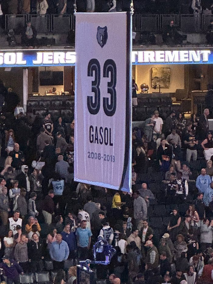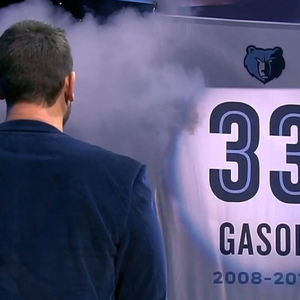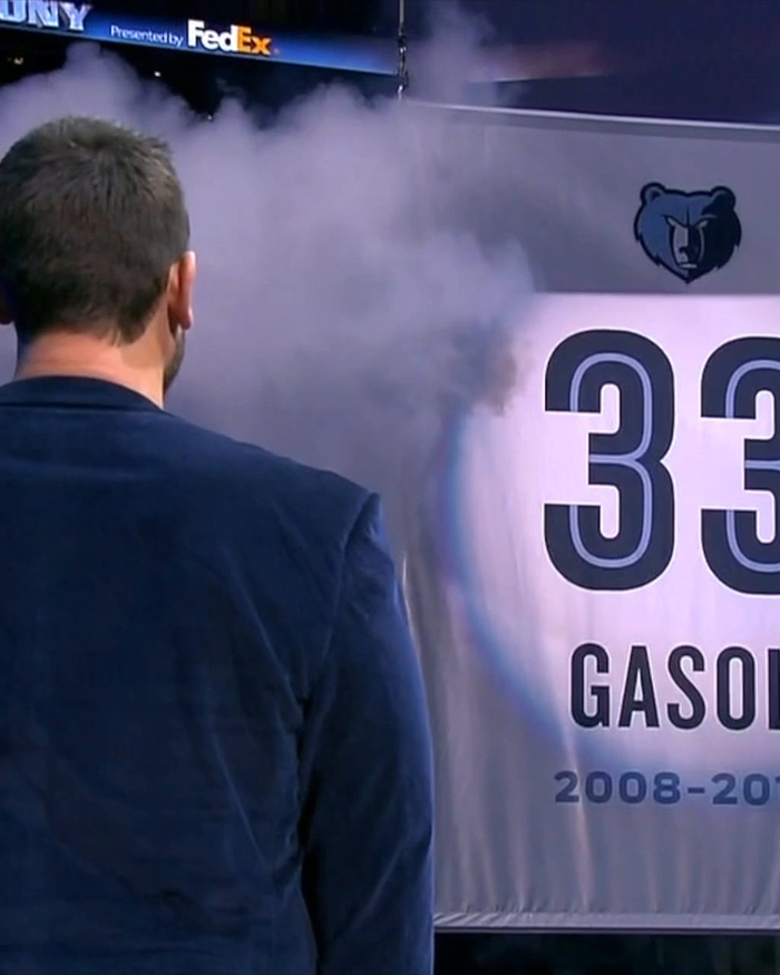 赛后,灰熊为球队名宿马克-加索尔举办了球衣退役仪式,“白熊”的33号球衣悬挂在联邦快递球馆上空,大加索尔、康利、盖伊、兰多夫和托尼-阿伦等灰熊旧将到场祝贺。