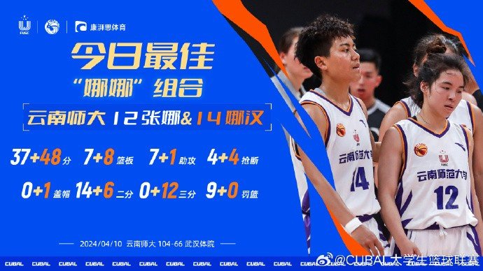 CUBAL今日MVP给到云南师大的“娜娜组合” 张娜与娜汉合砍85分