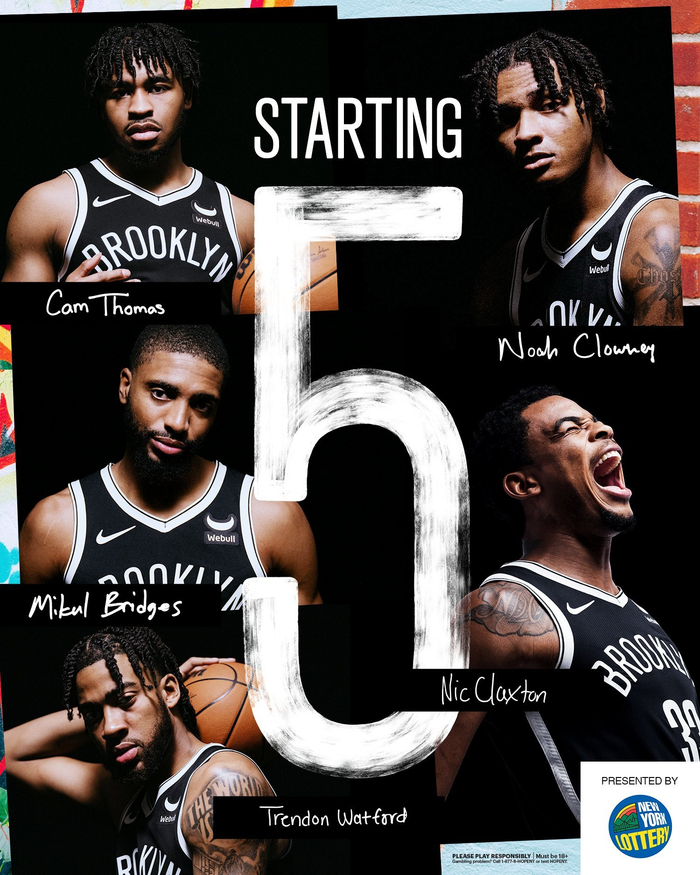 篮网前锋米卡尔-布里奇斯先发出场,本赛季常规赛82场全勤。