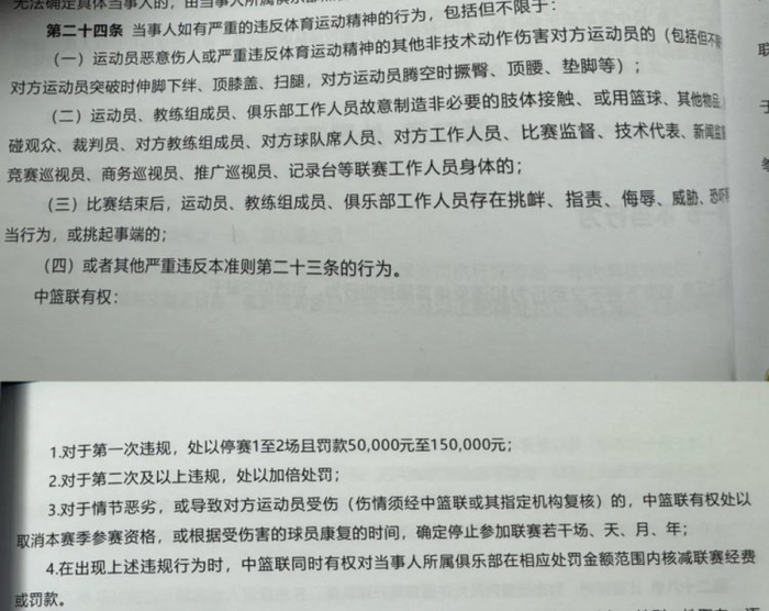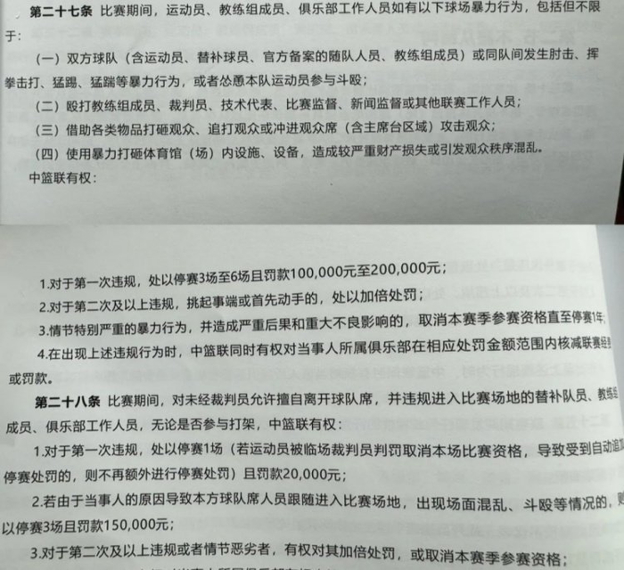 CBA公司近年来的罚单主要是围绕《中国男子篮球职业联赛纪律准则》第23条、第24条、第27条和第28条来进行处罚。