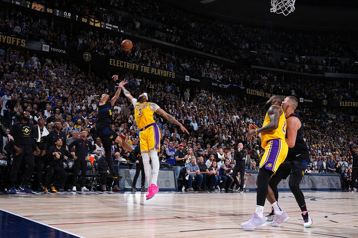 2020年9月21日,西部决赛G2,湖人105-103掘金,安东尼-戴维斯外线接球后三分绝杀一剑封喉。