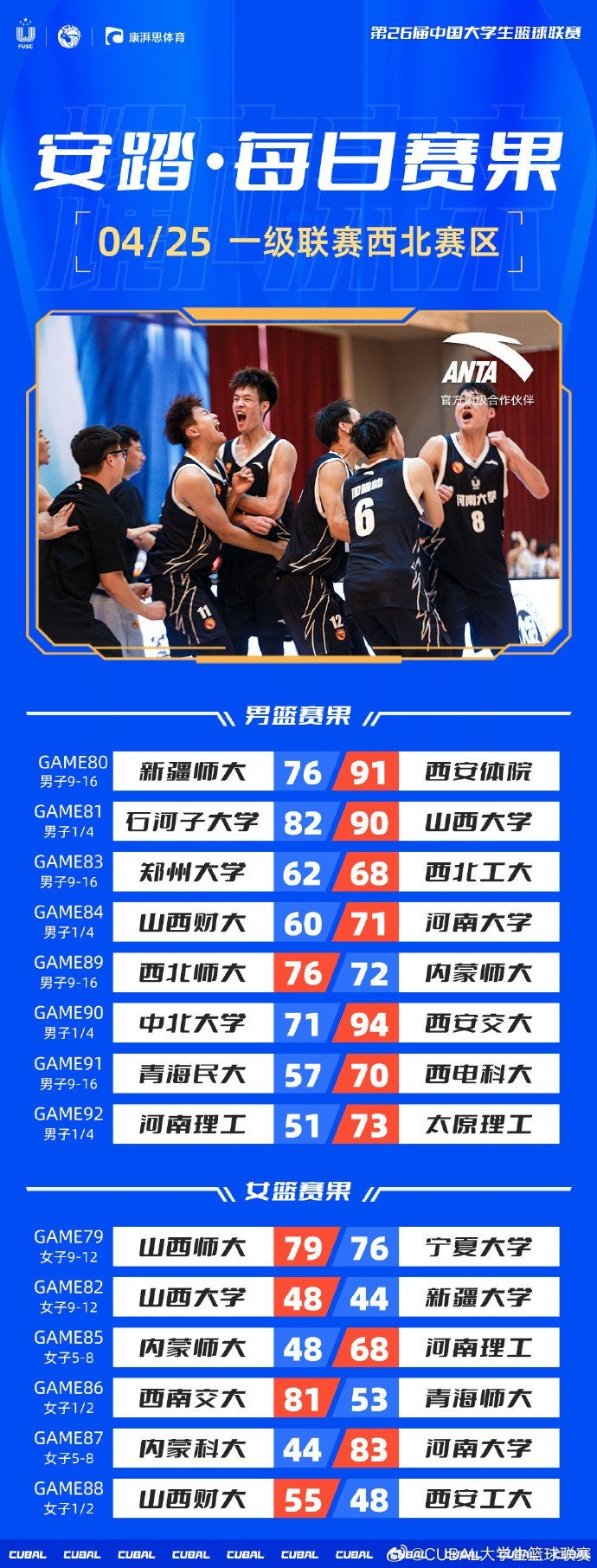 CUBAL赛果:西北赛区决出四强 河南大学再克强敌直通全国大赛