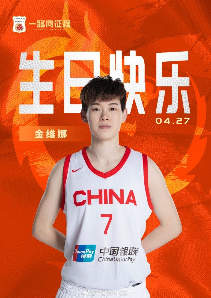 直播吧4月27日讯 今天是中国女篮国手金维娜32岁生日,祝福她生日快乐!