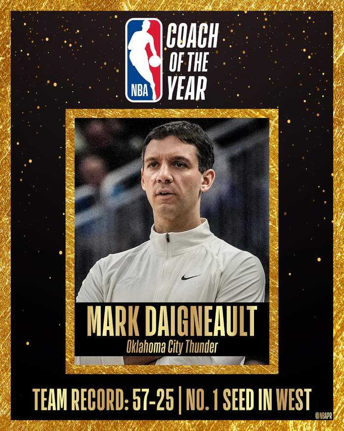 实至名归!雷霆主帅戴格诺特获得年度最佳教练