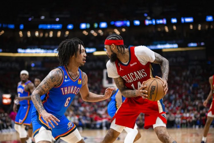 这很矛盾,消除防守弱点的同时,去掉这个进攻破局点,鹈鹕的进攻办法也不多。英格拉姆打不动多尔特,CJ开发进攻场面略好一点,但应对雷霆球员的天赋仍然吃力,并且多尔特后来又防他了。鹈鹕对位打不动,找中锋挡拆,或者点名外线弱点(比如吉迪、乔),又绕不开切特的护筐。切特这场护筐统治力惊人,他和多尔特的防守让鹈鹕非常头疼。
