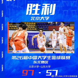 直播吧5月4日讯 CUBAL一级联赛,北京大学对阵山东大学。