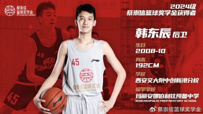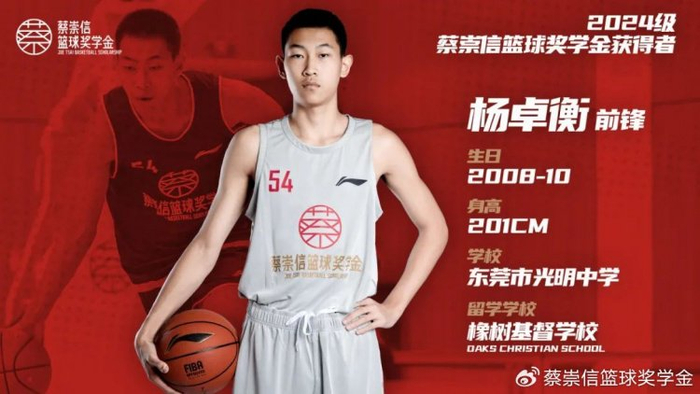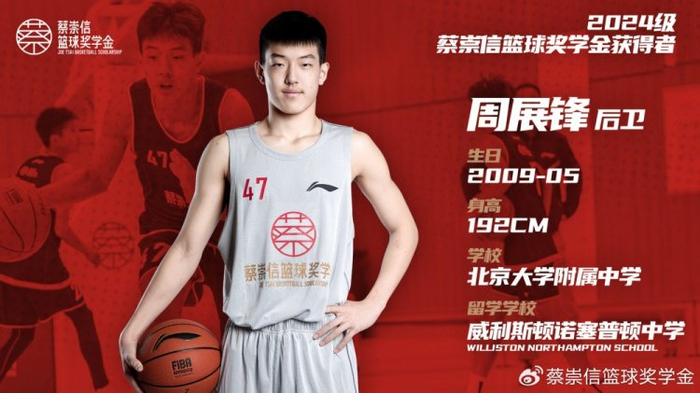 2024级蔡崇信篮球奖学金获奖名单揭晓 6人入选&今秋启程赴美深造
