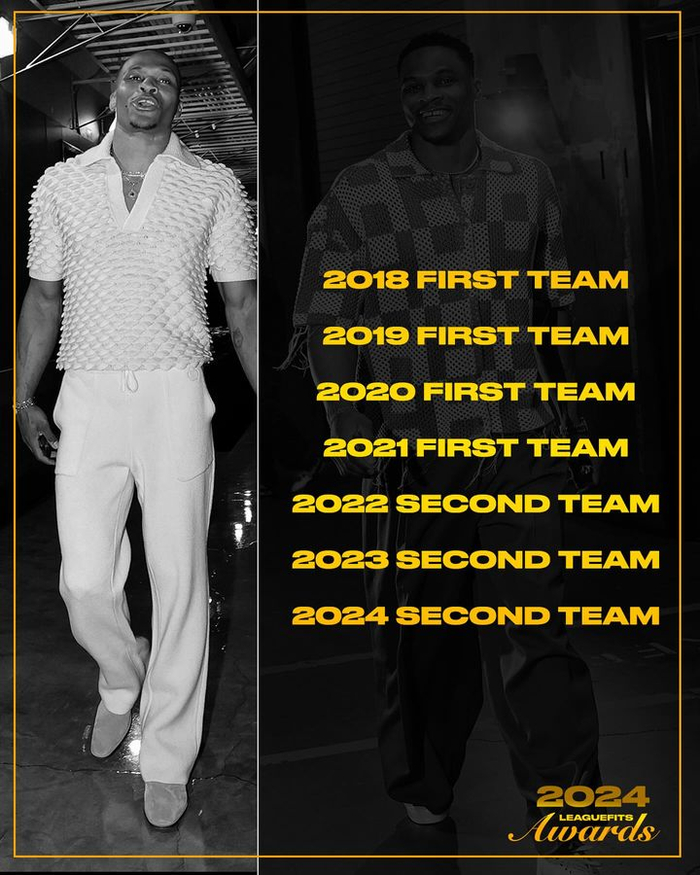 威少 2018&19&20&21连续四年一阵 2022&23&24连续三年二阵