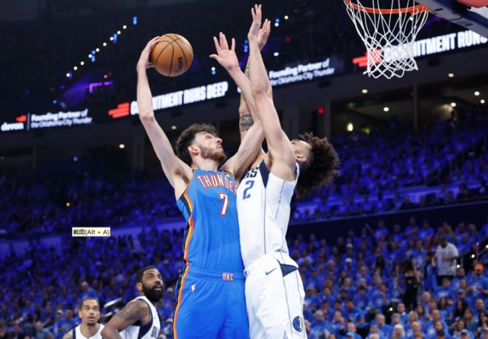 雷霆射手都是“能投、不致命”级别,站三分线上,除了吉迪,独行侠都得补一下,但也没有哪个能让独行侠轮转去到三分线外。这场SGA出球不错,杰伦和切特差点意思,而独行侠无差别中路与强侧堆人,让很多机会出现在三分线和弱侧,雷霆有些球没给或者给慢了。