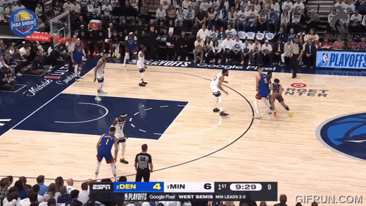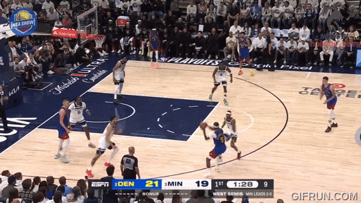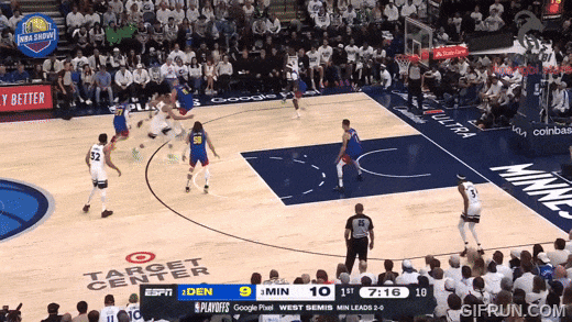 下一回合,穆雷又找了一次唐斯未遂;再下一回合,穆雷继续找唐斯,终于逼得森林狼轮转:于是约基奇和戈登招牌连线,终于打了出来。