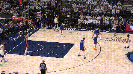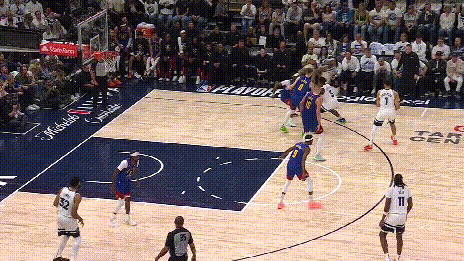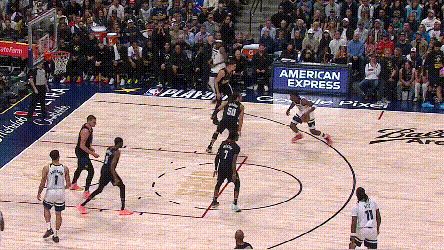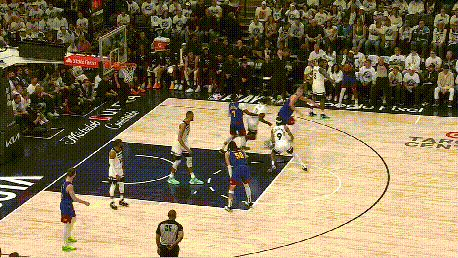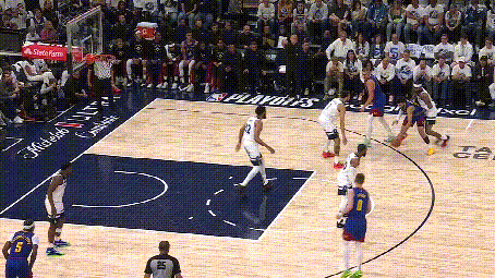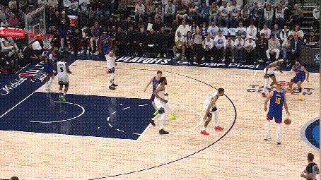 减少波特作为弧顶接应点,可能对这件事有了一点帮助。比起打湖人可以直接完成干拔硬解,这一轮掘金需要更耐心,因为真的很难拿到前板。另外,穆雷不管是作为接应点,还是个人进攻遭遇协防时的处理,也比G2要好一些。