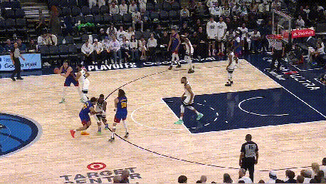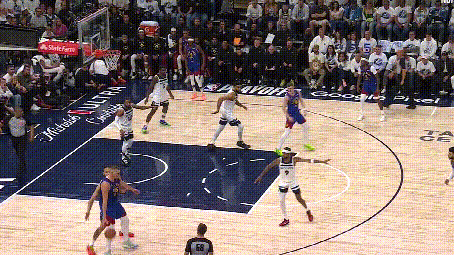 虽然狼的处理球表现在不同比赛会有波动,但如果对手是明牌的策略,提升强弱侧之间的转移球依旧是必要的,即使这有一定的失误风险。康利与华子,或者唐斯与华子,分别放置在强弱侧,利用康利在弧顶的中转能力,快速将球从强侧向弱侧弧顶转移,再利用华子、唐斯的定点投突,去惩罚掘金的护筐,或许是一种攻敌软肋的办法。在没有直接延误或者三分线收缩减速的情况下,掘金的护筐不好应对这两个人。
