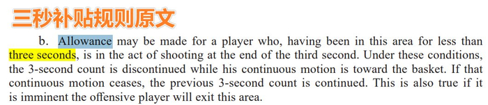 值得一提的是,NBA规则有明文规定,“进攻三秒”,它是有“补贴”的——NBA官方用的是Allowance这个单词。