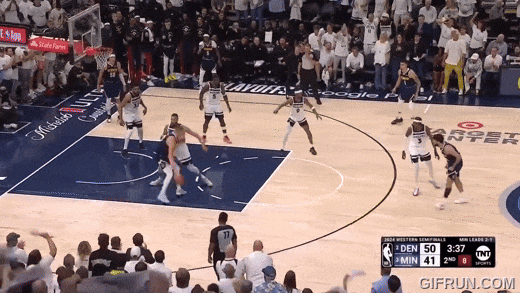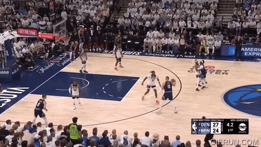 穆雷和约基奇的二人转,基本从中场开始启动。森林狼被迫扩防,尤其唐斯不在那段,约基奇能把戈贝尔拉到三分线去。空间出来了,掘金的三分球有了,戈登也能去吃饼了。