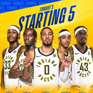 步行者队的首发阵容为:哈利伯顿、内姆哈德、内史密斯、西亚卡姆、迈尔斯-特纳。