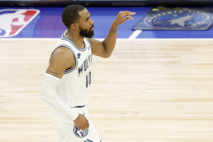 本场比赛,森林狼老将康利迎来复出,首发出战31分钟,投篮9中5,三分球6中3,拿到13分4篮板5助攻1盖帽的数据,正负值+26。