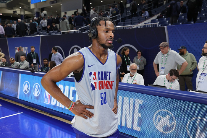 但布朗尼自身条件不足是硬伤。选秀训练营分三部分:第一是采集身体的各个数据,第二是跑跳、心肺、基本功测试,第三是对抗比赛。布朗尼的身体基础条件处于劣势,基本功还行,对抗比赛一场打得不好,一场不错。