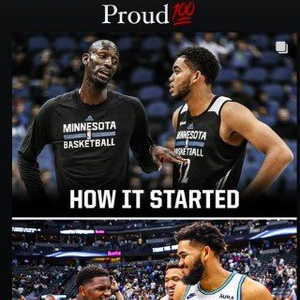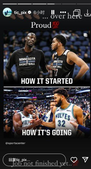 今日森林狼名宿加内特晒出自己当年和唐斯的同框照,写道:“自豪感拉满了💯,工作还没完成。💯”
