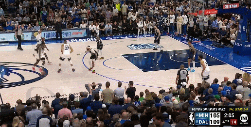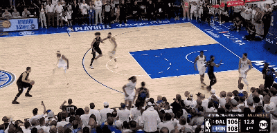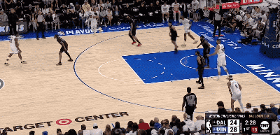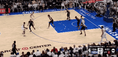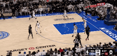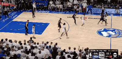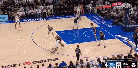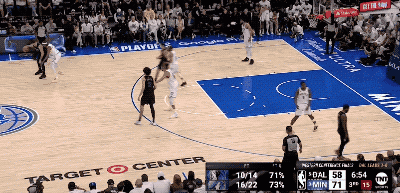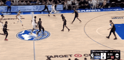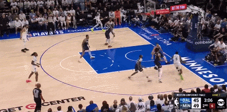 而东契奇手里掌握着多个不同的选择,就意味着防守端顾忌的事情也在相应增加,这就像在玩一场猜拳游戏,只不过东契奇总是能在后手出招的那个人,他有更多空间和时间上的错位可以利用,因此他能把森林狼的防守充分调动起来。