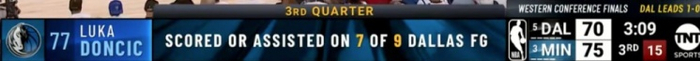 G2独行侠在第三节起势反扑时,得到的9分里有7分都和东契奇的传球或者出手有关。