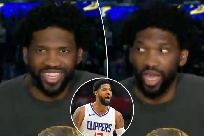 恩比德在谈及“希望球队休赛期补充一些球员”时,还瞟了一眼旁边的乔治。