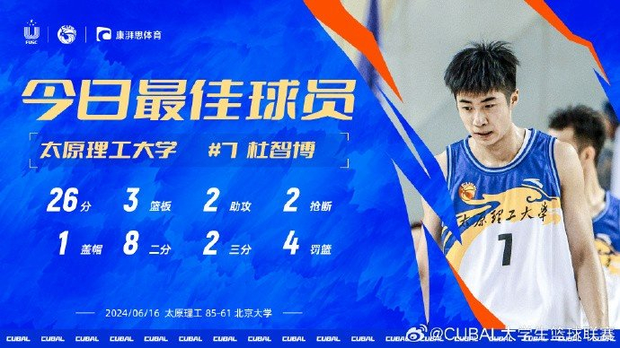 CUBAL今日最佳球员:太原理工杜智博 砍26分&压哨三分绝杀北大
