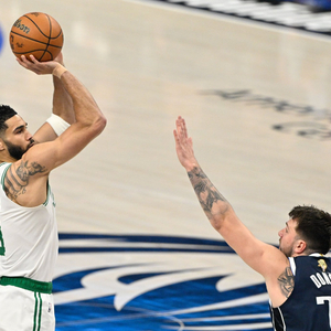 本赛季常规赛,塔图姆场均拿下26.9分8.1篮板4.9助攻1抢断,连续3年最佳阵容一阵;季后赛,塔图姆场均得到25分9.7篮板6.3助攻1.1抢断。