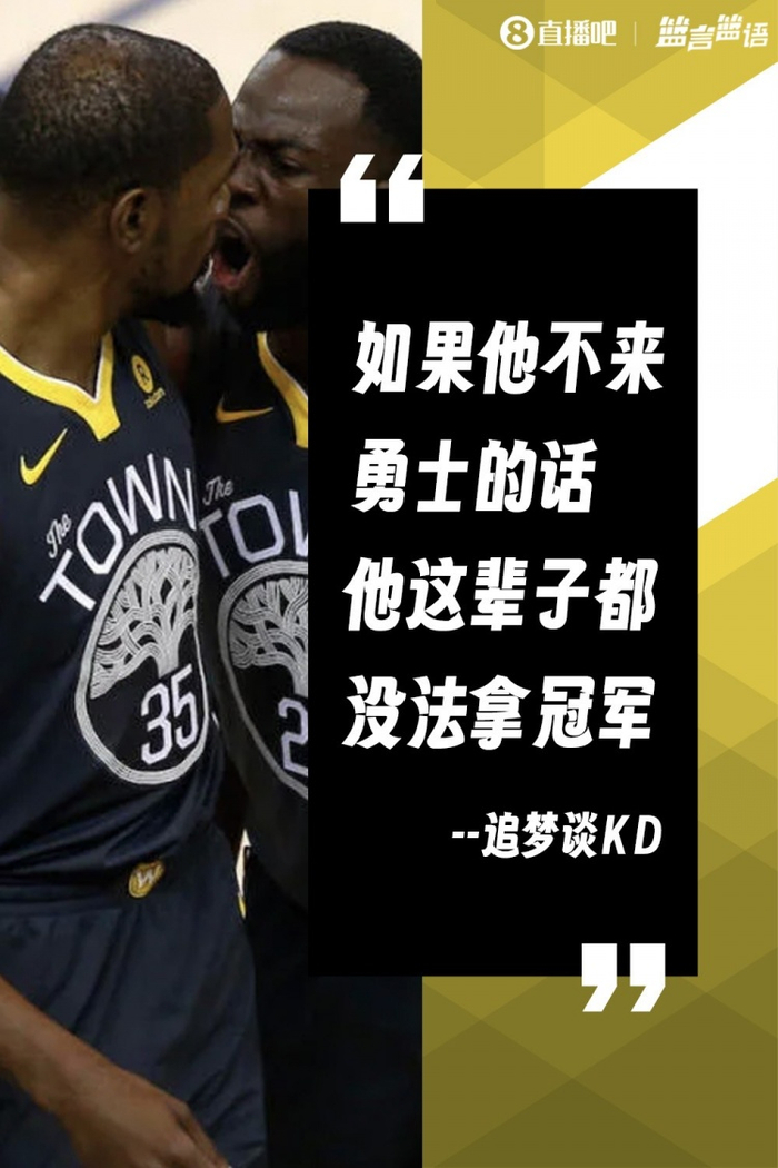 2、追梦谈KD:如果他不来勇士的话 他这辈子可能永远拿不到冠军!
