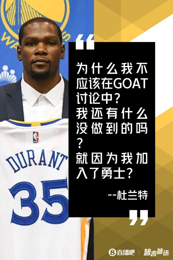 7、杜兰特:为什么我不应该在GOAT讨论中 就因为我加入了勇士?
