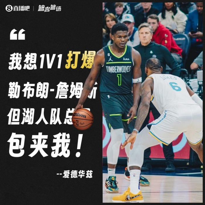 5、爱德华兹:我想1V1打爆詹姆斯