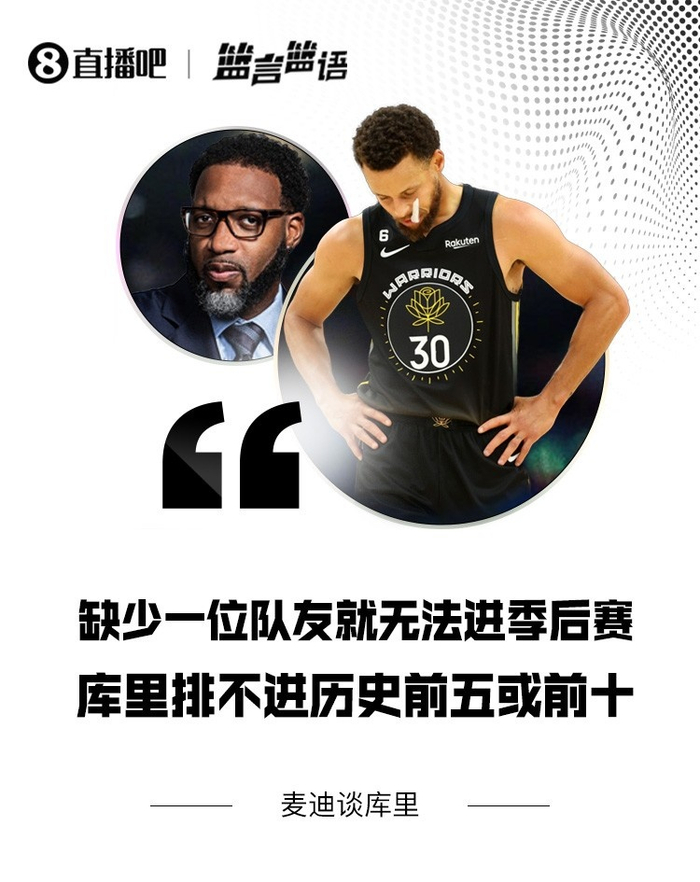 1、麦迪:缺少一位队友就无法进季后赛 库里不是历史前五或前十