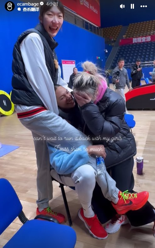 随后,坎贝奇又在Instagram Stories转发了该动态。此外,又发布了一则赛季期间与队友李梦、韩旭一起玩耍的视频,并配文:“等不及要跟我的姑娘们一起并肩作战了,我太想念她们了。”