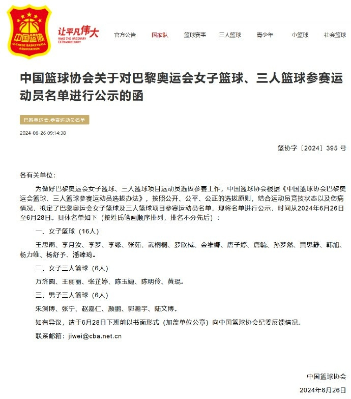 恭喜朱渊博、郭瀚宇、颜鹏入选巴黎奥运会男子三人篮球参赛名单!