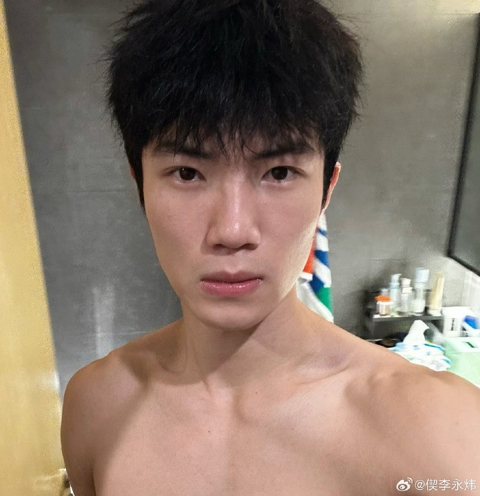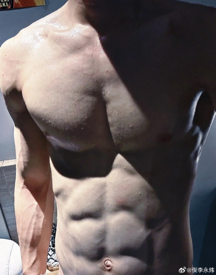 偰李永炜晒出自己健硕的身材,配文写道:“短期增肌计划成功☑️”
