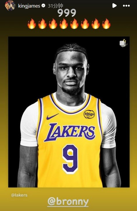 詹姆斯更新IG动态,转发布朗尼的球衣官宣照,配文写道:“999🔥🔥🔥🔥🔥🔥🔥🔥@布朗尼”