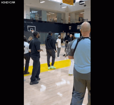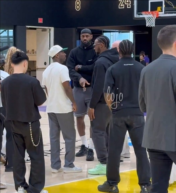 詹姆斯现身布朗尼介绍发布会现场 并与新队友在球场互相致意😝