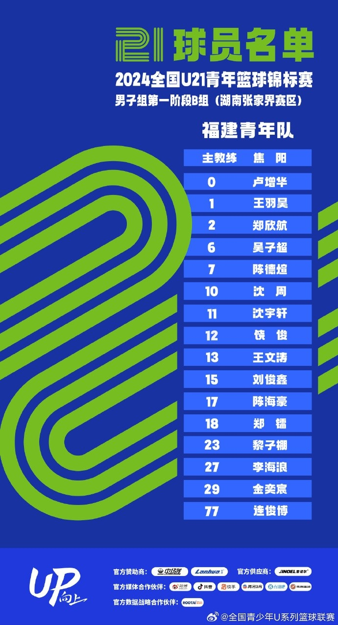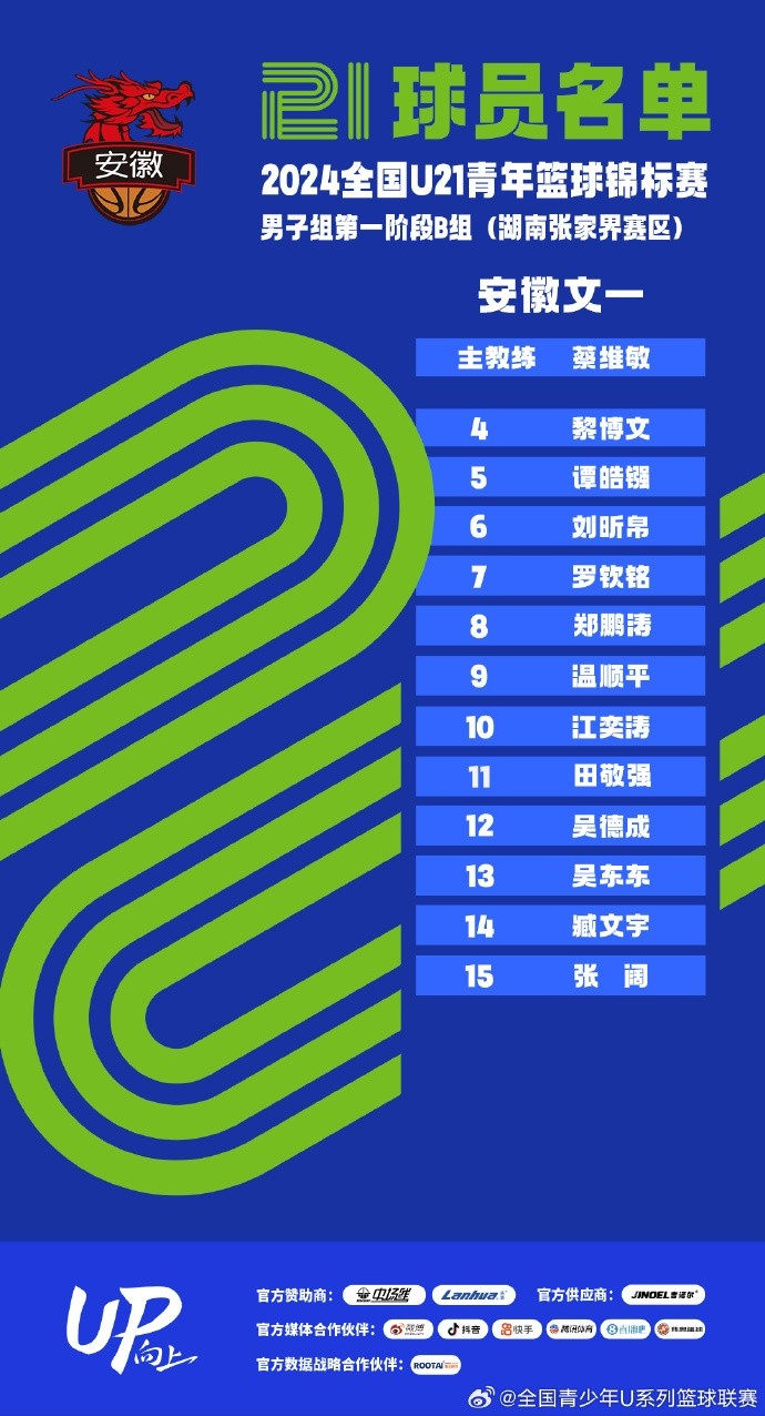【U21第一阶段B组球员名单】7月8日-15日,2024年全国U21青年篮球锦标赛男子组第一阶段B组比赛将在湖南张家界赛区进行。