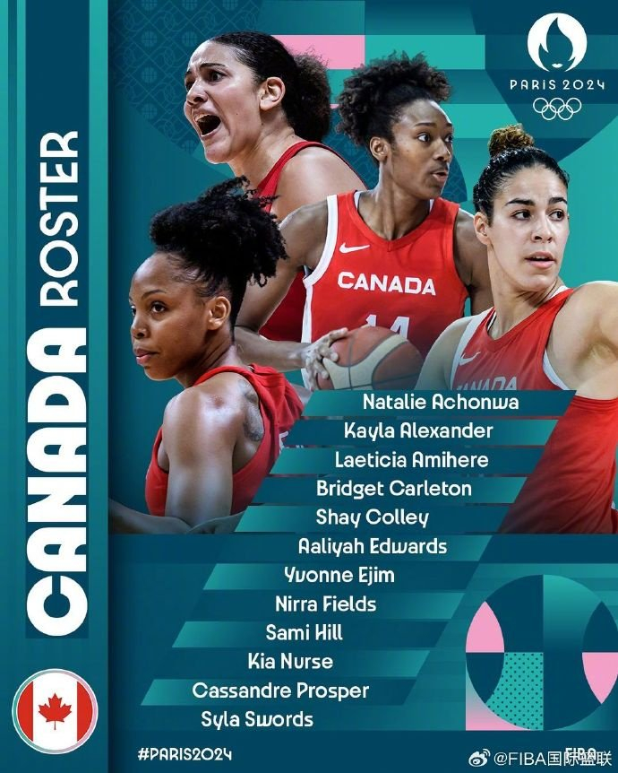 直播吧7月4日讯 加拿大女篮公布了出战2024年巴黎奥运会的12人名单,由布里奇特-卡尔顿领衔。