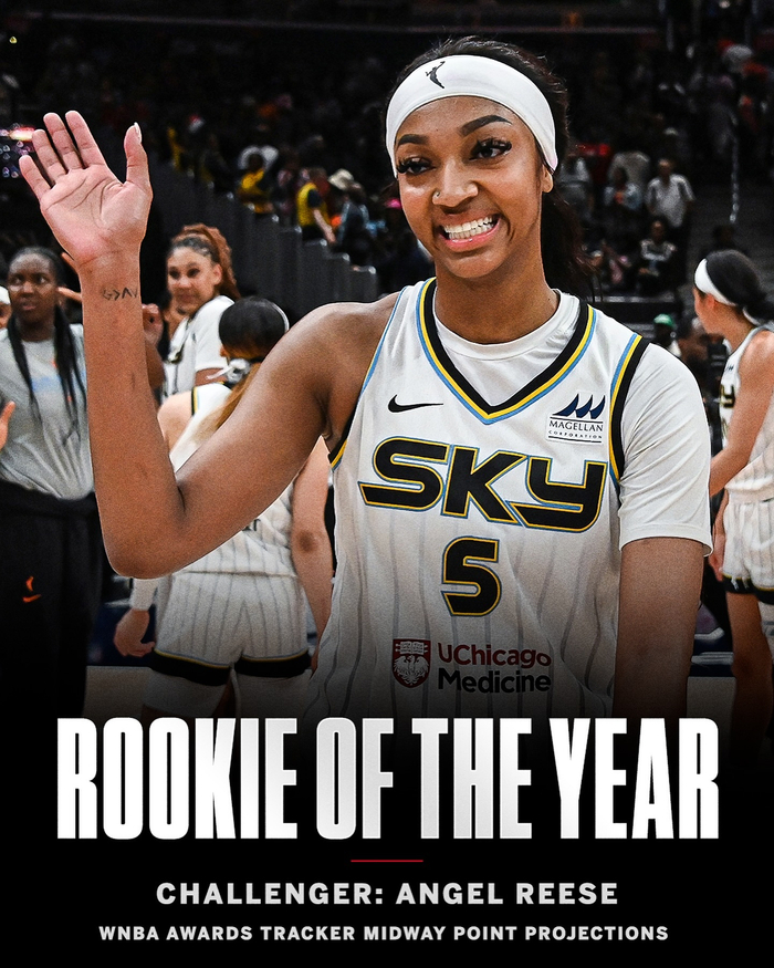 “而其他奖项的争夺尚未产生明确归属。最佳防守球员一直是投票者最难做出的决定之一。最佳第六人的候选球员,则取决于她们的球队如何制定她们的首发阵容。年度最佳新秀似乎很激烈,将是狂热的凯特琳-克拉克与天空的安吉尔-里斯共同角逐。这个奖项很可能会受她们二人是否能带领各自球队打入季后赛的影响。”(天空目前7胜11负排名第8、狂热8胜13负排名第9,胜场相差0.5)